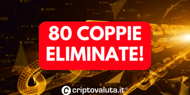La rimozione delle coppie sopraindicate avverrà il prossimo 16 ottobre, quando in Italia saranno le 21:30. Prima di allora sarà ancora possibile fare trading, per quanto con ogni probabilità con liquidità calante. Ad ogni modo, chi dovesse rimanere con una delle crypto sopracitate in portafoglio, potrà comunque continuare a scambiarle contro USDC.
