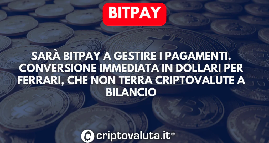 Questo obiettivo sarà raggiunto da Ferrari con la conversione immediata delle criptovalute che verranno incassate. Conversione che sarà verso il dollaro USA per ora e poi, quando il sistema sarà attivato in Europa, anche in Euro.