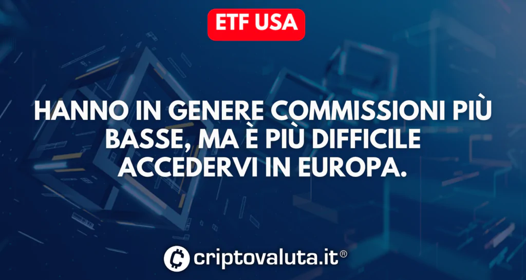 Come dovrebbe essere ormai chiaro dalla trattazione che abbiamo fatto poco sopra riguardo gli ETF Bitcoin Spot, ci sono prodotti che sono quotati negli USA e altri invece che sono quotati all’interno del mercato europeo. Ci sono delle differenze sostanziali delle quali si deve tenere conto prima di investire.