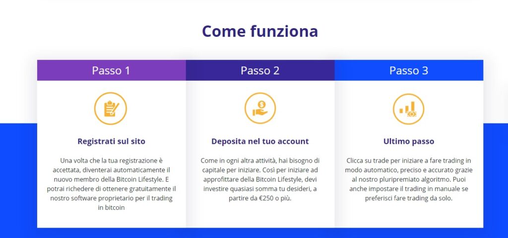 - come funziona Bitcoin Lifestyle secondo i suoi promotori (FALSO);