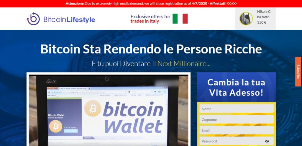 Tra questi ultimi figura sicuramente Bitcoin Lifestyle, che non è nient’altro che l’ennesimo tentativo di ingannare gli investitori che vorrebbero cercare profitto con le criptovalute, facendo loro intendere che sia facile ottenere del denaro attraverso il trading con Bitcoin.