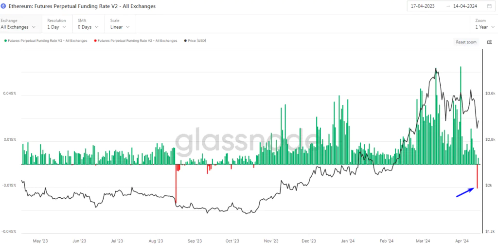 Due giorni fa, abbiamo avuto per la prima volta da Ottobre 2023 una situazione in cui chi detiene posizioni long ha pagato chi detiene posizioni short. Di solito ciò accade quando il prezzo del future perpetuo è inferiore al prezzo spot, indicando che il sentimento del mercato è più ribassista.