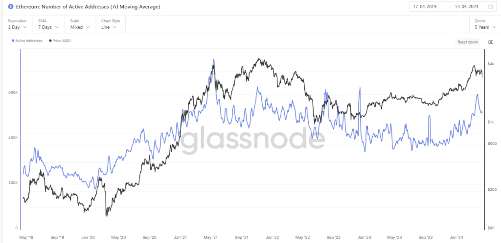 Nonostante i movimenti di breve termine del prezzo di Ethereum, l’analisi dei dati on-chain rivela che l’interesse finanziario rimane elevato. Tuttavia, l’utilizzo della sua blockchain in vari settori sta diminuendo, in particolare negli NFT e nelle stablecoin, a causa degli alti costi di transazione. Questo ha portato molte dApps a orientarsi verso progetti Layer 1 e Layer 2 più economici.