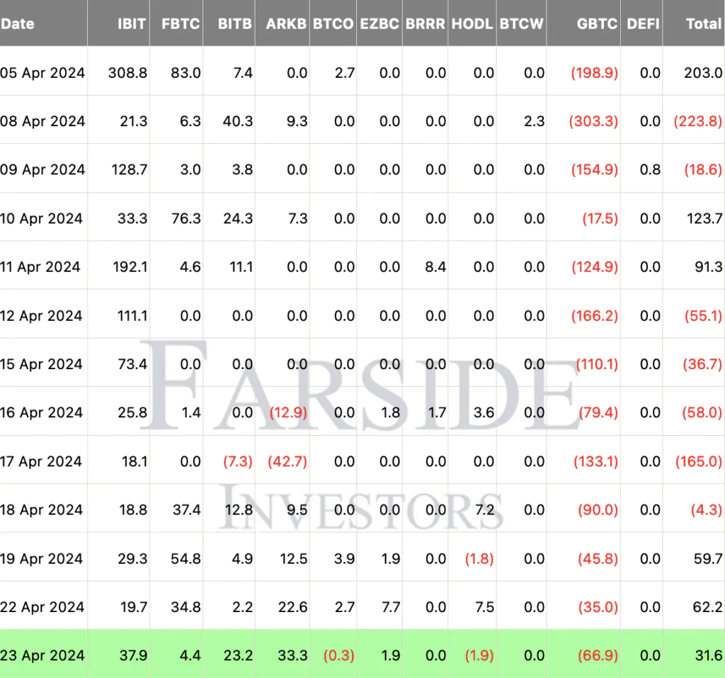 Secondo i dati diffusi da Farside, ieri è stato il terzo giorno consecutivo di flow positivi per gli ETF su Bitcoin. È una buona notizia, per quanto si tratti di flussi che al netto possono fare poco per muovere un mercato che, rispetto a quello di questi flow, è enorme.