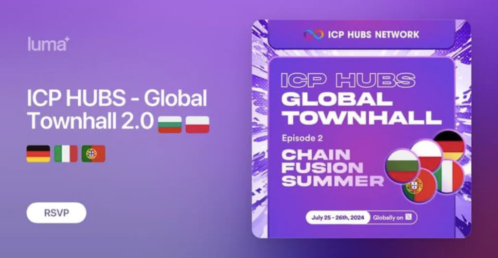 Ci sarà spazio anche per ICP HUB Italy e Ticino: l’appuntamento è fissato per il 25 luglio, dalle 20:30 alle 21:00 e potrete partecipare all’evento iscrivendovi qui. Ci sarà danto di cui parlare, con un focus particolare sul tema principale di tutta la serie di Townhall, la Chain Fusion Summer e l’interoperabilità di ICP con tanti altri ecosistemi del mondo Web3, compresa Hedera Hashgraph che sarà oggetto del focus di questo incontro nella più importante delle piazze virtuali.