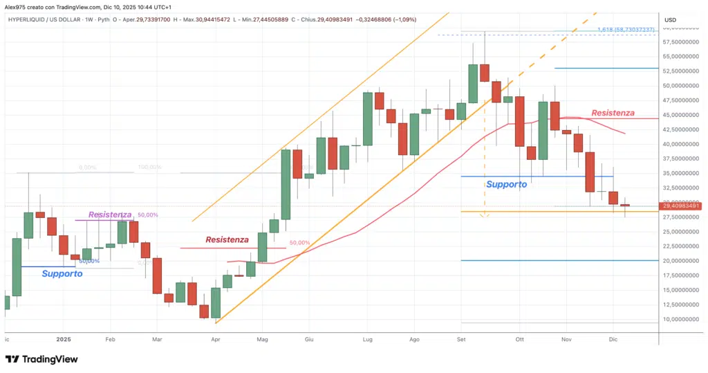 Hyperliquid (HYPE) – weekly 11 dicembre 2025
