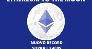 🚀Ethereum è inarrestabile e batte record su record. Il nuovo massimo storico fissato dalla criptovaluta è sopra i 3.400$ (resistenza sulla quale si è innescata una breve correzione), per il token che fa registrare, nel complesso, una crescita di oltre il 30% settimana su settimana. Qualcosa di incredibile, soprattutto in una situazione ...