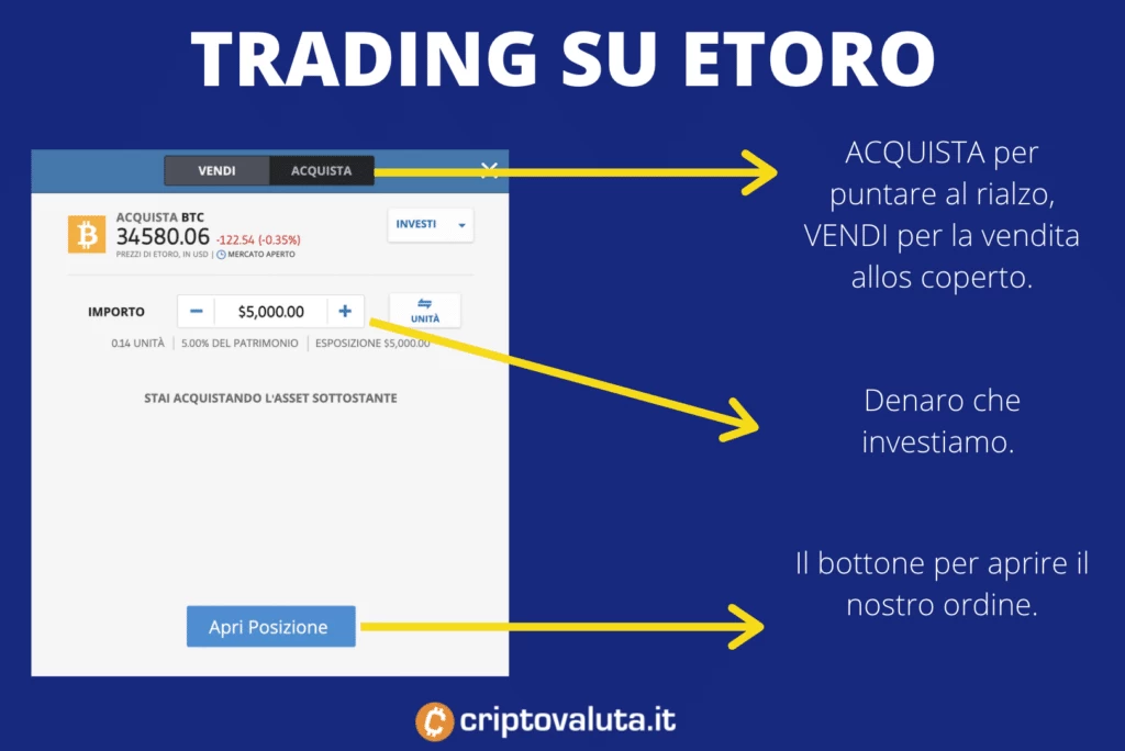 Anche la schermata di ordine su eToro è semplice da utilizzare