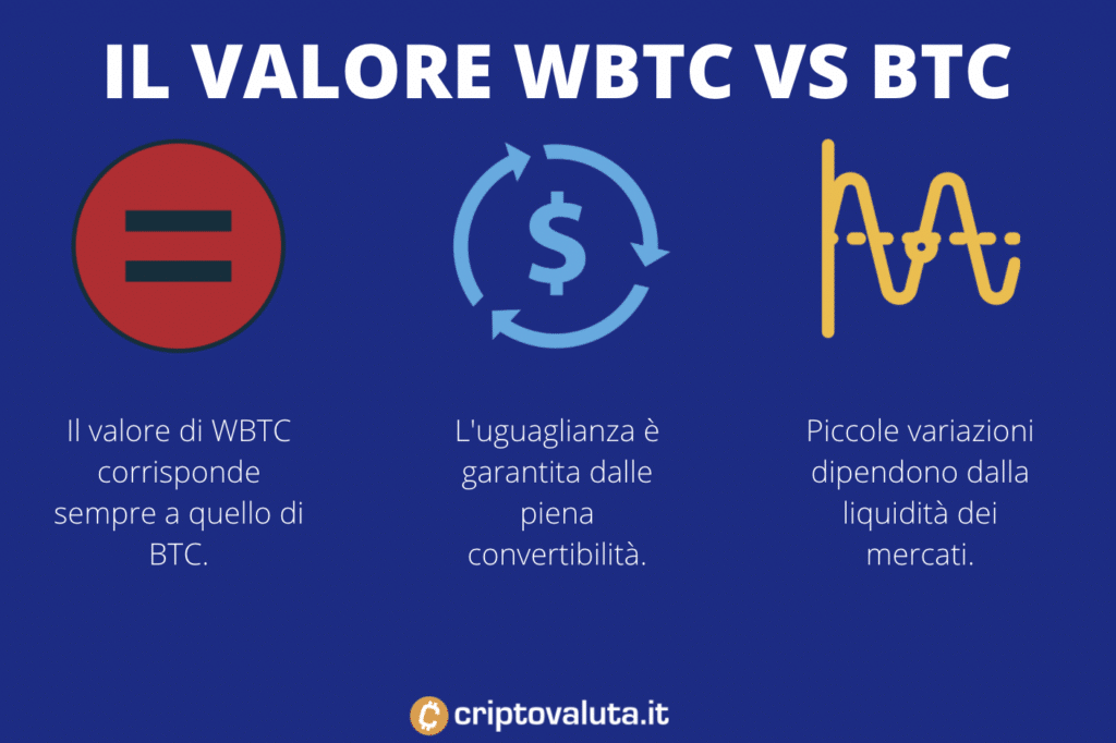 Il valore di WBTC e BTC corrisponde quasi perfettamente