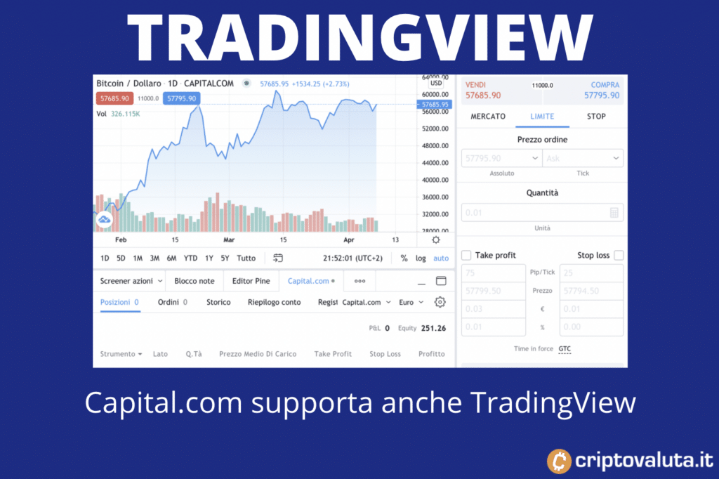Capital.com è anche integrabile all’interno di TradingView. Se siamo già clienti di questo servizio esterno potremo collegare dalla plancia il nostro account con quello che utilizziamo con Capital.com.