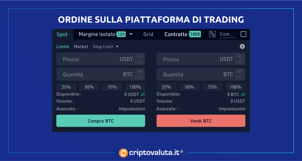 GRIGLIA: è la modalità che ci permette di impostare ordini ripetuti su un arco di prezzo ampio, con dettagli che possono essere gestiti sia in modo automatico, sia da noi a livello manuale.