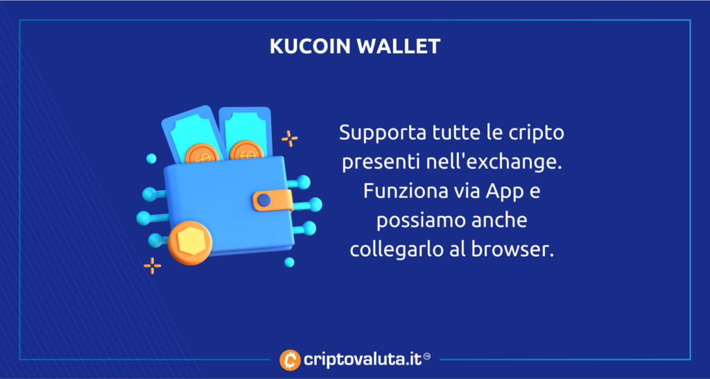 Sì, KuCoin offre un wallet completo, esterno e non-custodial, con il quale possiamo detenere tutti i coin e token che sono supportati dall’exchange stesso. È un buon wallet, che possiamo integrare anche con il browser.
