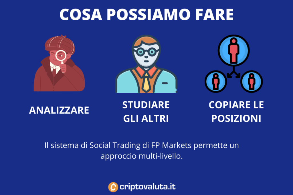 FP Markets offre tanti sistemi di trading automatico e anche di CopyTrading: possiamo dunque sfruttare sistemi aggiuntivi per fare trading crypto tramite questa piattaforma. Tale meccanismo è ovviamente disponibile anche per altri mercati, in modo da adattarsi al meglio alle esigenze dei singoli utenti registrati.