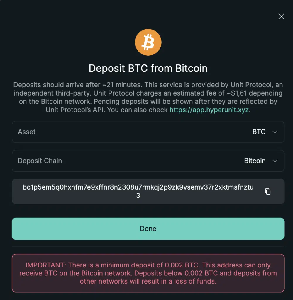 È possibile anche versare in USDT, che verranno però swappati di default ed accreditati come USDC wallet. In realtà si possono depositare anche asset come ETH, BTC, SOL, BONK, FARTCOIN, PUMP e SPX, dalle relative reti Ethereum, Bitcoin e Solana, sfruttando l’apposito bridge interno “HyperUnit”.