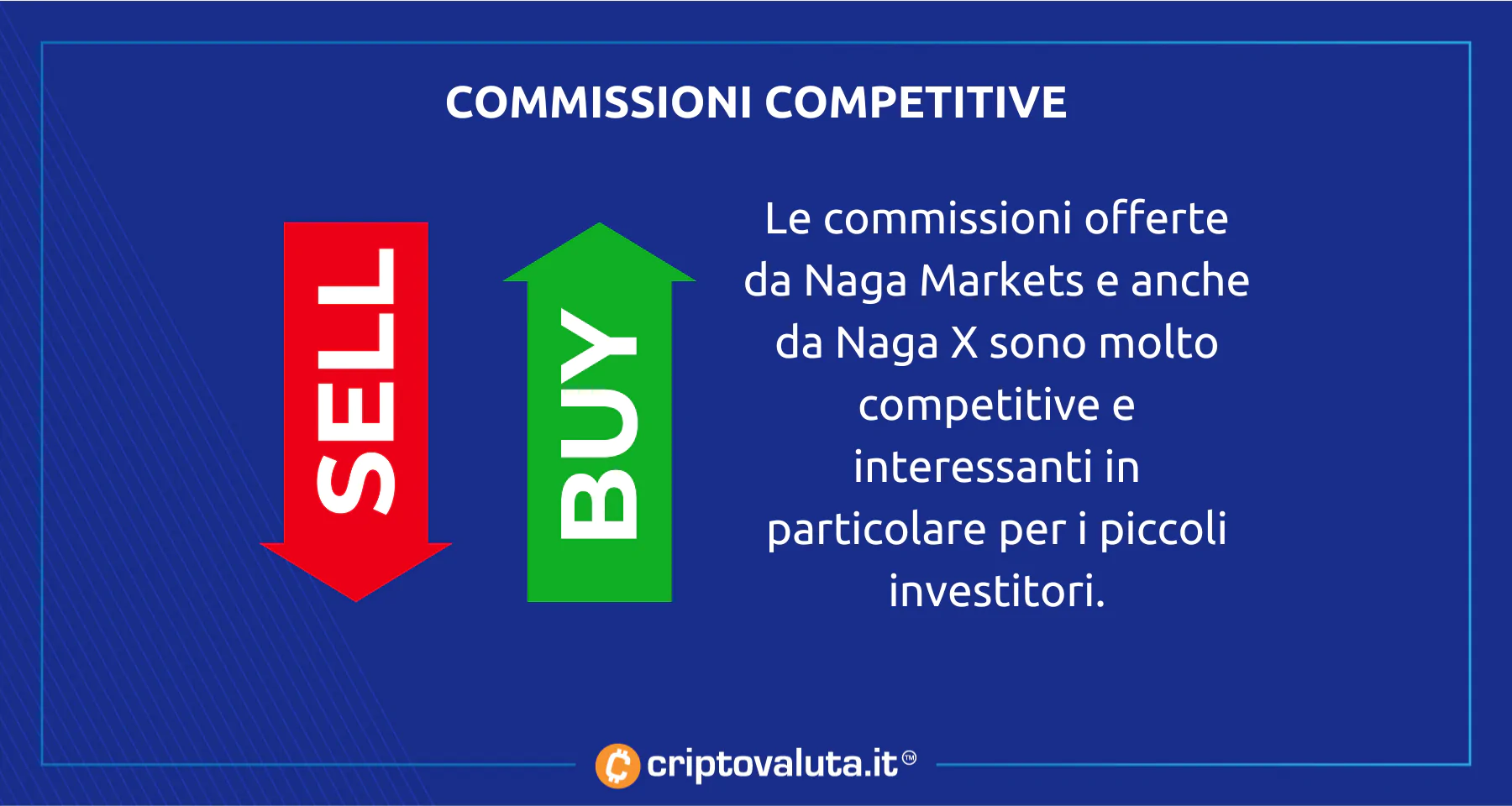 - Costi su crypto: a parità di servizi non devono essere superiori. Naga Markets, tanto per la divisione in CFD quanto per quella in accesso diretto offre dei profili di commissioni in linea con il mercato.