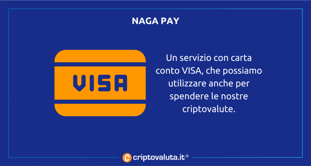 Naga offre anche la possibilità di accedere ad una carta VISA con la quale poter spendere direttamente le nostre criptovalute. Il servizio può essere richiesto online e prevede tre diversi tipi di servizio.