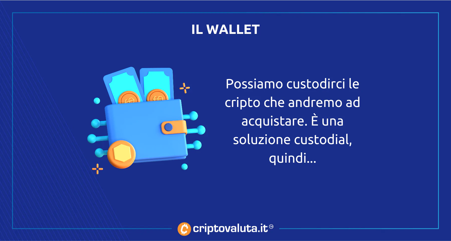 - Custodial wallet Bitcoin: il portafoglio sul quale vengono versati i nostri BTC è di tipo Custodial, in linea con quanto fanno il grosso degli exchange. Una volta depositati potremo decidere se spostarli altrove (consigliato) o meno.